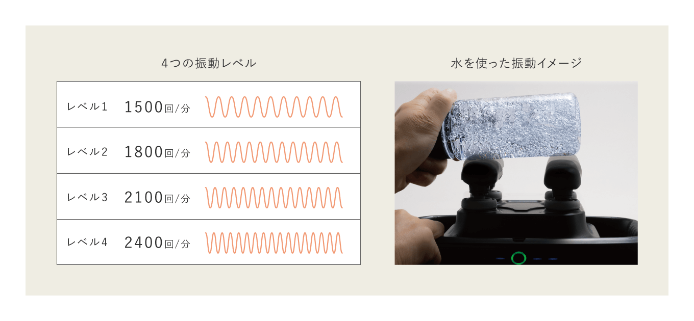 振動レベルは4種類。 毎分1500回・1800回・2100回・2400回から選べます。