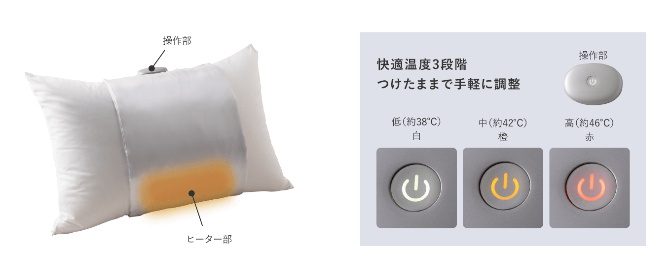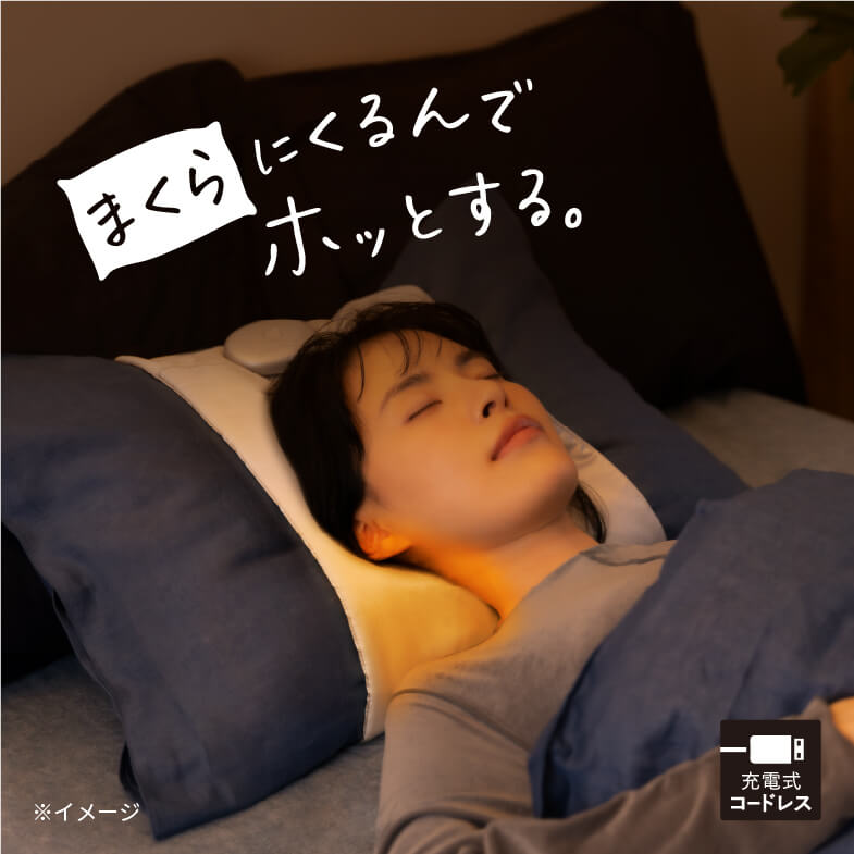 本製品は毎日使っている枕に巻いて首もとをじんわりと温める新しいネックヒーターで、枕を買い替える必要がありません。 枕が変わると眠れないという心配もありません。